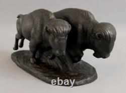 Antique Signed Joseph Lorkowski Boulton Western American Bronze Bison Sculpture