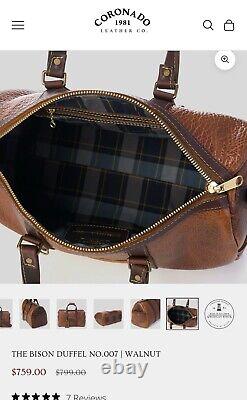 Brand new without tags Coronado Leather Bison/Buffalo Weekender Duffel unisex bag, made in the USA in limited batches. Never used, still has the stuffing in it. It's perfect for a carry on or weekender bag, super durable bison grain and color all the way around with metal zippers and multiple pockets inside and out. You'll definitely get compliments as the bison grain and color and contrasting dark leather trim pops.